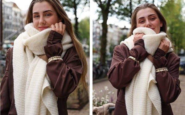 Dit seizoen heeft de "Saalbach" een stijlvolle upgrade gekregen met een prachtig vegan-leather bandje om de sjaal perfect in model te houden, ongeacht hoe je hem draagt. Of je nu kiest voor een nonchalante look of jezelf extra goed wilt inpakken op de koudere dagen, dit detail zorgt ervoor dat de sjaal altijd op zijn plek blijft.