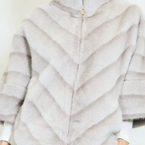 Elegante jas met Chevron patroon faux vacht voor een gewaagde look. Hele zachte structuur en pluche gevoel. Met een mooie kraag met zipsluiting.